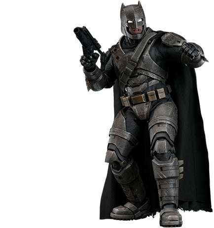 バットマン、本名ブルース・ウェインは、悪を憎み、強固な意志を持つ謎に満ちた闇のヒーローだ。普段は大富豪にして華やかなプレイボーイだが、少年時代、両親が目の前で強盗に殺害されたことをきっかけに、犯罪撲滅を誓ったという暗い過去を持っている。天才的な頭脳、極限まで鍛え上げられた肉体と格闘スキルで悪に立ち向かう。ある日、あまりにも強大なパワーを持つスーパーマンを危険視した人々の民意を背負い、そのパワーに対抗すべく重装甲のアーマーを装着し、「史上最大の闘い」に挑むのだった。
