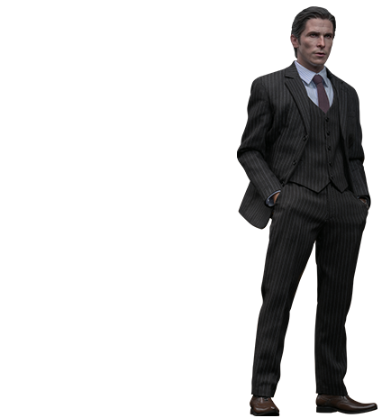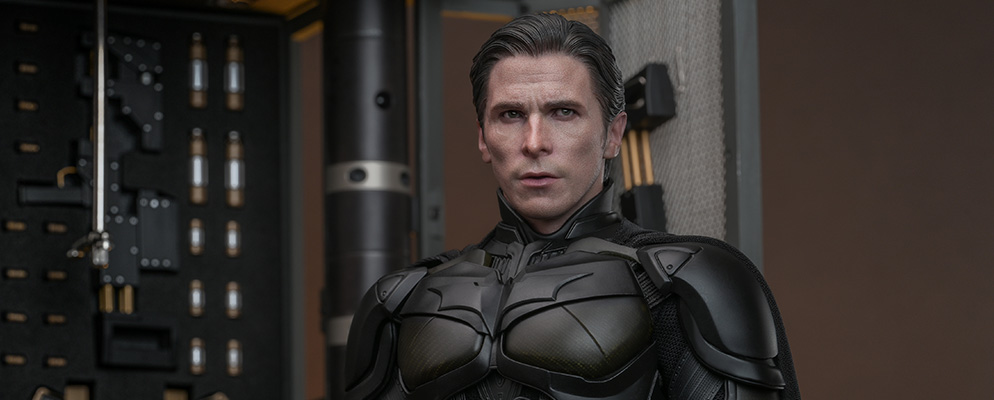 ブルース・ウェインは、全高約30cm、30箇所以上が可動する、ハイエンドな1/6スケールのフィギュアとして立体化。新規開発となる、演じる俳優クリスチャン・ベールの肖像権をクリアしたヘッドは、眼球可動ギミックを搭載。髪型や顔の皺、皮膚の質感などを再現すべく、一つひとつハンドペイントによる塗装が施されている。ストライプ柄のビジネススーツや、左手につけた腕時計など、細部に至るまでこだわり抜き、質感に至るまで精巧な仕上がりだ。バットマンのフィギュアにも使用できる、作品のロゴがデザインされた特別仕様の台座が付いてくるぞ。