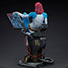 『マーベル・コミック』に登場するミスティークを、大迫力の高さ約39cm × 幅約31cm × 奥行き約35cmのスタチューとして立体化。ブルーの肌にまとった白のスーツとブーツ、右手に持った重火器、囚われた仲間たちの名前が映し出されたトラスク・インダストリーズのセキュリティ機器など、細部に至るまで精巧に造りこまれている。差し替え用パーツを使用することで、セキュリティを解除するために身体の一部を警備員に変身した姿を再現可能。キーカードを持った左腕、黒いブーツの左脚、無線がついたベルト付きの胴体パーツが付属する。台座とセキュリティ機器のモニターには、ライトアップ機能を搭載しているぞ。