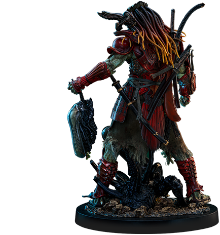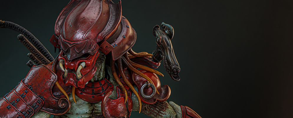 時は安土桃山の戦国時代。天下統一を志す第六天魔王こと織田信長が操るエイリアンと、この時代に飛来した孤高の戦士プレデターが壮絶な死闘を繰り広げていた。赤鬼サムライ・プレデターは、戦国時代に勇猛な武将や精鋭部隊が着用していた「赤備え」の甲冑を装備しているという設定だ。
