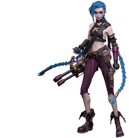 両親を亡くし地下都市のゾウンで姉のヴァイと共に育ったパウダーは、一緒にいると不吉なことを巻き起こすことから「ジンクス」というニックネームで呼ばれていた。ある日パウダーの発明品によって起きた哀しい事故により、姉のヴァイと袂を分かってしまう。その後ゾウンを牛耳るシルコの下で育てられた彼女は、過去を捨てて「ジンクス」として、地上都市ピルトーヴァーの脅威となるのだった。
