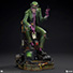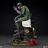 『DCコミックス』に登場するリドラーを、大迫力の高さ約50cm × 幅約30cm × 奥行き約36cmのスタチューとして立体化。グリーンとパープルのコスチューム、片手に持った「?」マークが書かれた紙と起爆装置、ウェインタワーの設計図や監視カメラ映像を映したTVといったアイテムなど、細部に至るまで精巧に造りこまれている。怪しげな倉庫を再現したジオラマ仕様の台座には、発電機やケーブルなどが造形されているぞ。