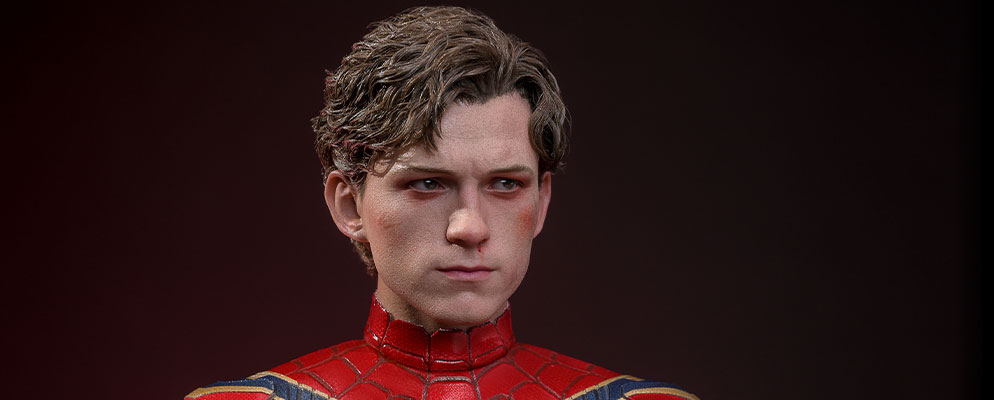 『アベンジャーズ/エンドゲーム』に登場するアイアン・スパイダーを、全高約29cm、30箇所以上が可動するハイエンドな1/6スケールのフィギュアとして立体化。ヘッドは新規開発の2種が付属。1つ目は、眼部にLEDライトアップ機能を搭載したマスク着用のヘッド。2つ目は、トム・ホランド演じるピーター・パーカーの素顔のヘッドだ。ウェーブのかかったブラウンのショートヘアは、ウール素材による植毛仕様でリアルに表現。皮膚の質感、腫れたまぶた、戦いの中で負った傷や汚れなどを再現するため、一つひとつハンドペイントによる塗装が施されている。眼球可動ギミックを搭載し、自由な視線変更によって、まるで生きているかのような存在感を醸し出すことが可能だ。マスクを着用したヘッドは、5種類の眼部パーツを差し替えることによって、赤く光った「インスタント・キル」モード発動時ほか、さまざまなスタイルを再現できるぞ。メタリックレッド、ブルー、ゴールドのスーツは新たに開発し、一部が白く光るライトアップ機能を搭載!シンボルである蜘蛛のマーク、両腕につけたウェブ・シューターなど、ディテールや素材にこだわり抜き、質感に至るまで精巧な仕上がりだ。マグネットで背中に取り付けられる4本のピンサーは、より劇中に忠実なデザインで造形されている。関節に可動箇所を設けているので、さまざまなアクションシーンを演出できるぞ。アクセサリーとして、ナノ・ガントレットとムジョルニアが付属。ナノ・ガントレットは指関節が可動し、インフィニティ・ストーンが光るライトアップ機能を搭載している。ムジョルニア用のものを含む多彩な形状のスパイダーウェブや、豊富な差し替え用ハンドパーツを併せて使用すれば、数多くのシチュエーションを再現できるぞ。さらに、岩場が造形されたジオラマ台座が付属。自由にフィギュアの保持位置を変更できるフレキシブル・ピラーを採用しているので、ウェブ・スウィングしている姿など、アイアン・スパイダーならではのアクションシーンを楽しむことが可能だ。